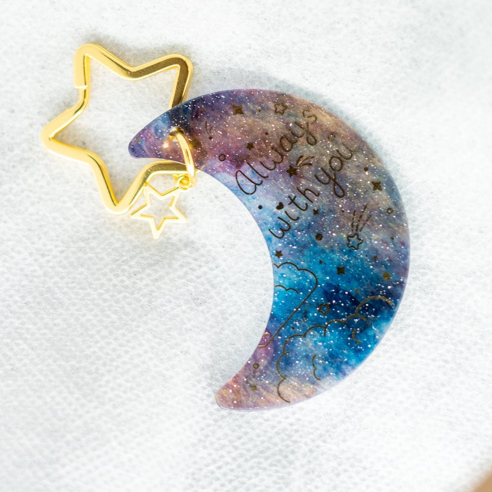 A 3inch acrylic keychain with gold foil details.