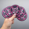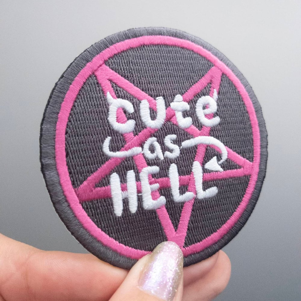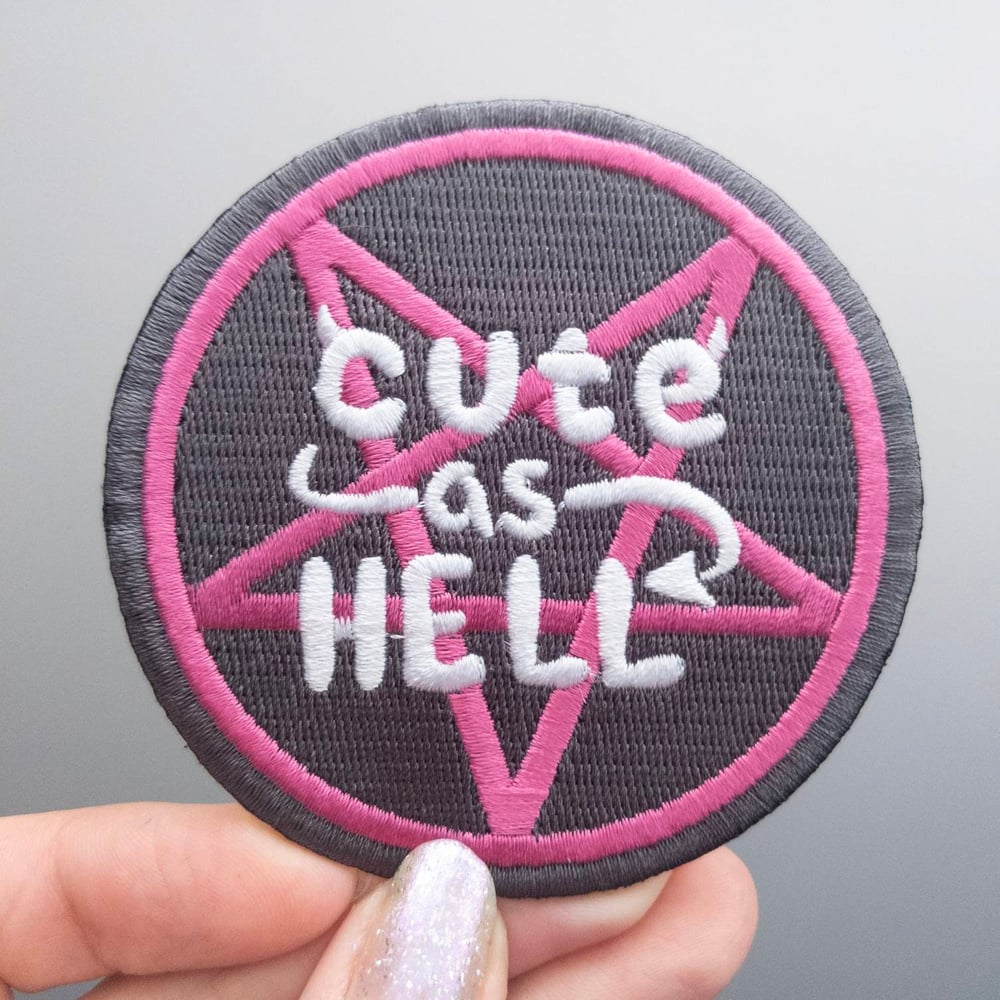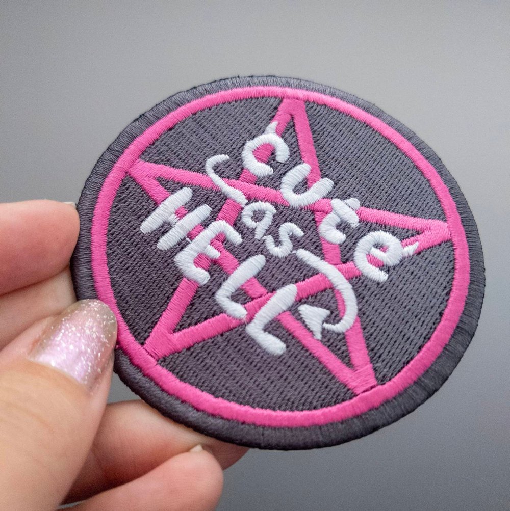 3 inch diameter, with iron on backing applied so you can iron it on or sew it on, or both! Whichever you prefer.