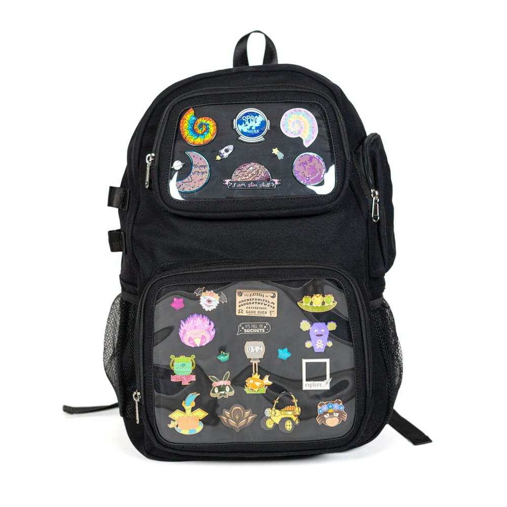 The functional ita backpack is here and ready for your adventures! Keep your pins safe while on display. The pockets will show your pins while making sure they don't fall off when getting stuffed under the seat in front of you or in the overhead cabin bins!