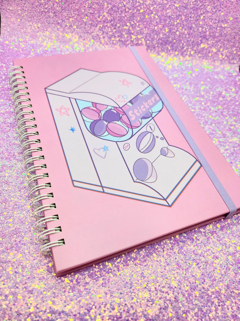 The front and back covers are hard cover with a matte laminate and a color coordinated elastic band to keep those stickers flat and closed! The coil on this design is white.
