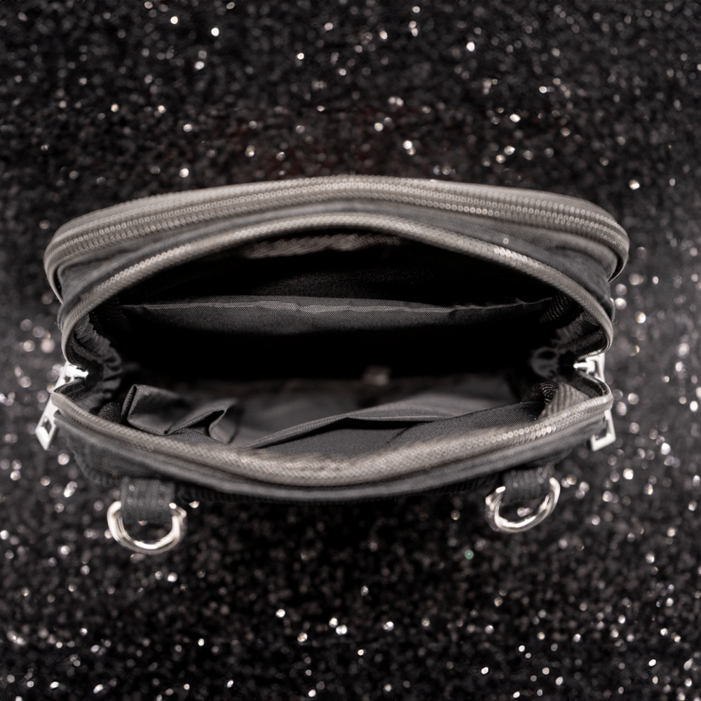 On the exterior of the bag you will find 6 D rings to attach the adjustable strap to, letting you wear it how you want. There is also a fabric loop for wearing on a belt or attaching to other straps.