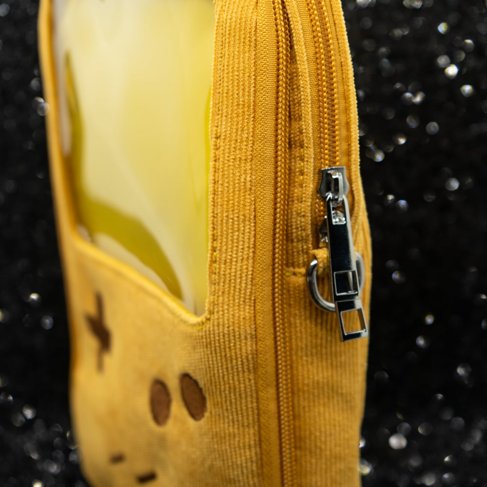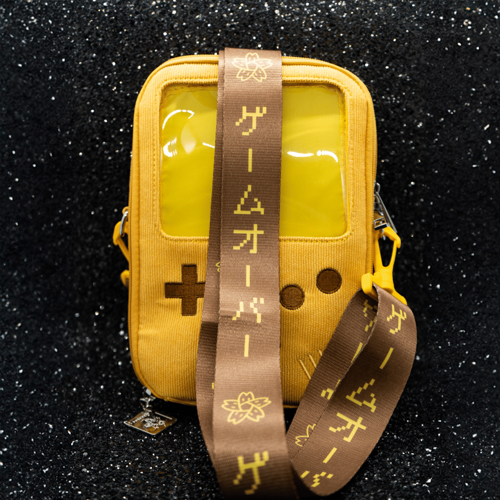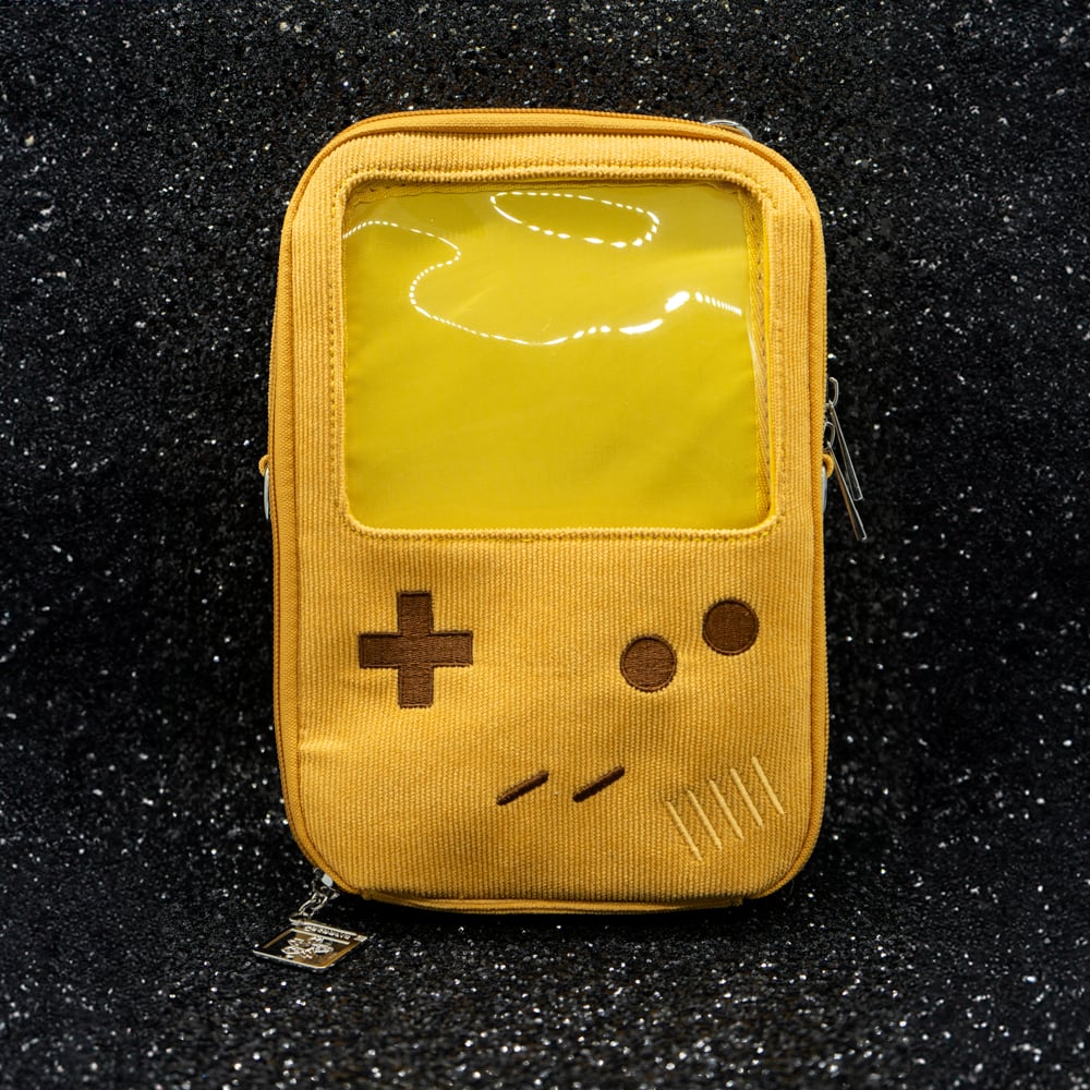 Game Over! This mini ita bag is based on your favorite childhood gaming handheld, in special electric yellow! With embroidered details, cartridge shaped charm zipper, and multiple connection points to let you wear your bag how you want.