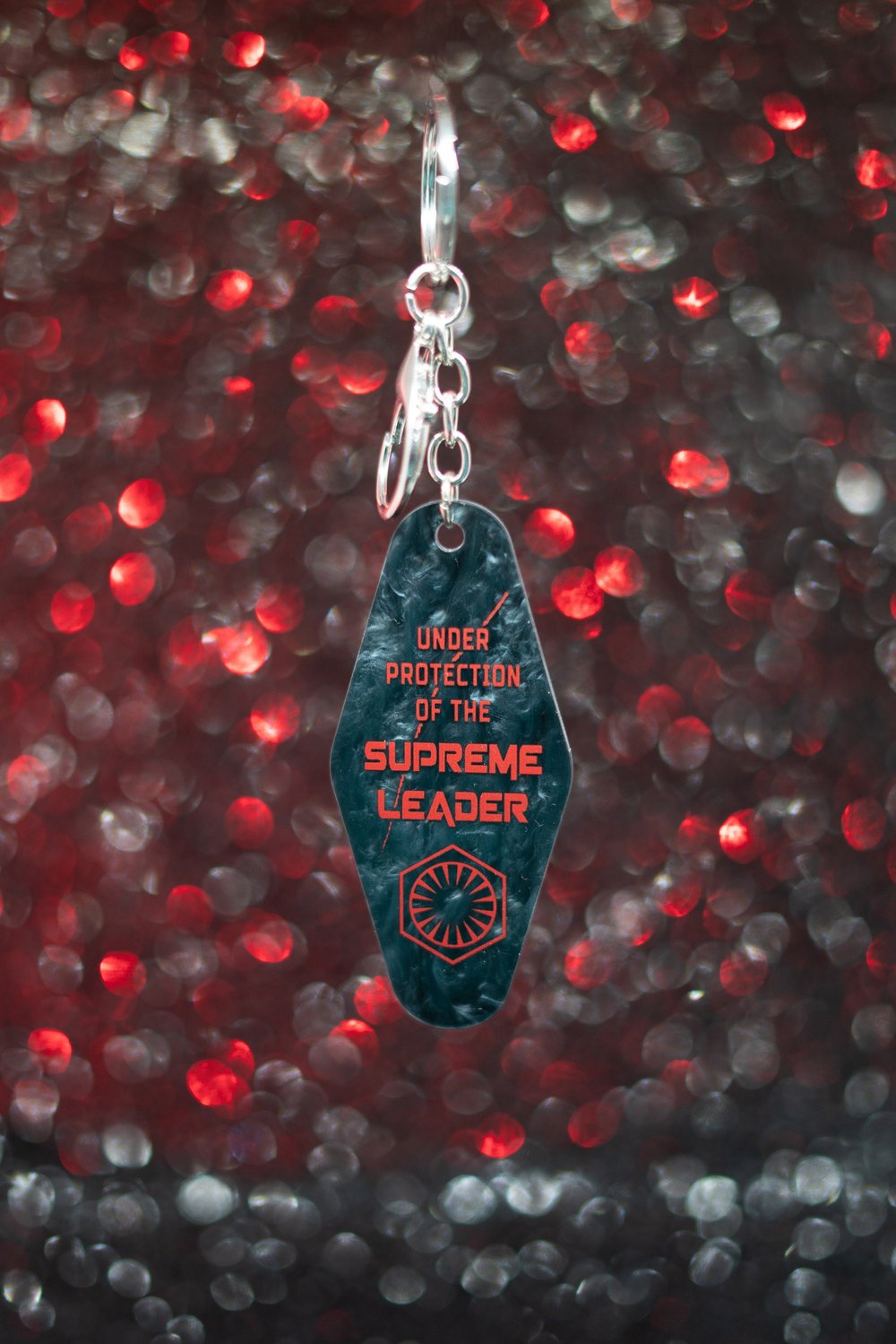Front says" Under protection of the Supreme Leader" and the back says "If found, please return to Kylo Ren"